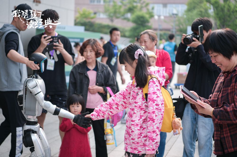 在科技互動(dòng)區(qū),可以近距離感受前沿科技,與3臺(tái)機(jī)器人和1臺(tái)機(jī)器狗進(jìn)行互動(dòng),激發(fā)探索知識(shí)的興趣。
