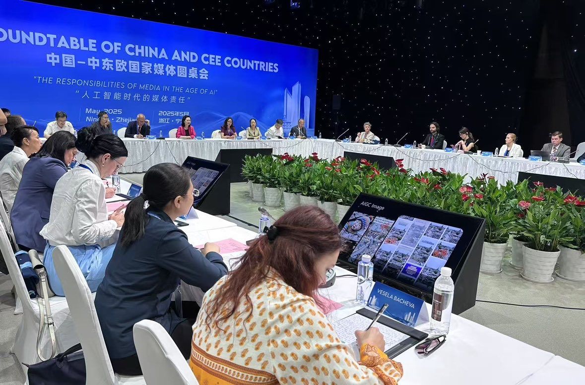 5月22日,由中華全國新聞工作者協(xié)會(huì)國際聯(lián)絡(luò)部主辦的中國—中東歐國家媒體圓桌會(huì)議在寧波廣電集團(tuán)600平米演播廳舉辦,此次會(huì)議是中國—中東歐國家合作框架下媒體交流的重要品牌活動(dòng)。來自中國和14個(gè)中東歐國家的40余位媒體代表圍繞“人工智能時(shí)代的媒體責(zé)任”主題進(jìn)行交流研討。中國記協(xié)書記處書記吳旭出席并作主旨發(fā)言。會(huì)中,中東歐國家記者團(tuán)團(tuán)長斯特凡·勒戴亞努,中東歐國家研修團(tuán)團(tuán)長塔尼亞·喬治亞娃·格盧赫切娃等與會(huì)嘉賓和中外媒體代表圍繞人工智能時(shí)代背景下的傳統(tǒng)媒體轉(zhuǎn)型、媒體公信力、行業(yè)規(guī)范、社會(huì)責(zé)任、人才競爭等話題深入交流探討,中方媒體代表圍繞人工智能在新聞業(yè)務(wù)中的創(chuàng)新應(yīng)用作了經(jīng)驗(yàn)分享。與會(huì)嘉賓還在市委宣傳部常務(wù)副部長焦劍等陪同下參觀考察了寧波廣電新空間,對寧波廣電集團(tuán)全新的工藝設(shè)施、專業(yè)的配套服務(wù)表達(dá)了贊許,表示在設(shè)施一流的專業(yè)演播廳舉辦國際媒體交流活動(dòng)非常有意義。
