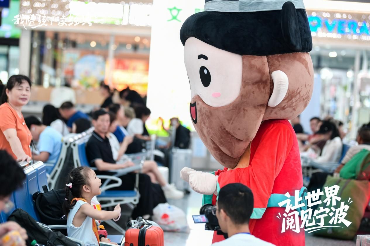 快閃活動(dòng)中,天一閣“閣主大大”人偶一出現(xiàn)就成為了全場(chǎng)焦點(diǎn),“奶呼呼”的卡通形象吸引著孩子們紛紛上前擊掌、合影。“閣主大大”與孩子們親切互動(dòng),候車(chē)大廳里回蕩著陣陣歡聲笑語(yǔ)。