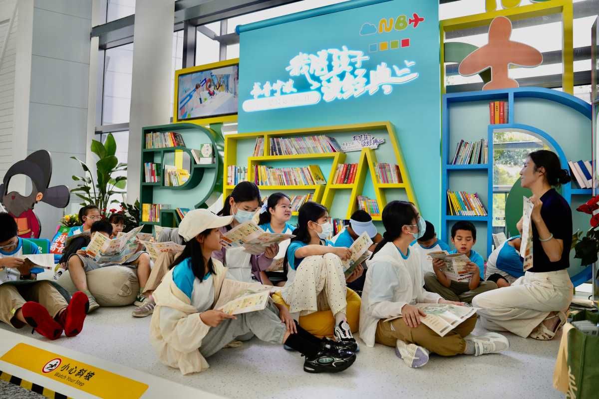 除了火車(chē)站和汽車(chē)站,寧波櫟社國(guó)際機(jī)場(chǎng)也早已是“我陪孩子讀經(jīng)典”的重要陣地。“我陪孩子讀經(jīng)典·小小書(shū)香園”正式亮相機(jī)場(chǎng)雙航站樓連廊區(qū)域,提供親子圖書(shū)閱讀、新媒體觸屏互動(dòng)、有聲閱讀等全媒體閱讀服務(wù),成為旅客候機(jī)時(shí)的文化驛站。7月28日,在寧波櫟社國(guó)際機(jī)場(chǎng)航站樓內(nèi)還開(kāi)展了“小小書(shū)頁(yè)載鄉(xiāng)愁 萬(wàn)米云端憶羅城”活動(dòng),讓旅客在候機(jī)時(shí)沉浸書(shū)海,了解寧波歷史文化。