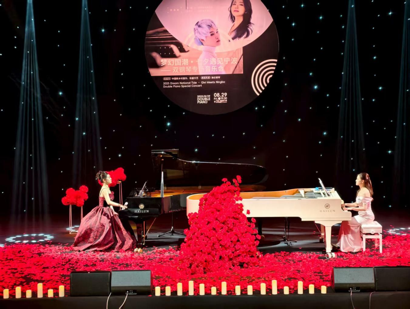 8月29日,在七夕這個充滿浪漫氣息的傳統(tǒng)節(jié)日里,由寧波廣電集團(tuán)旗下寧波新鄉(xiāng)村音樂發(fā)展有限公司和寧波市秋盛文藝發(fā)展有限公司聯(lián)合出品的“夢幻國潮·七夕遇見寧波——雙鋼琴專場音樂會”在寧波廣電集團(tuán)演播廳舉行。這場音樂會巧妙地將國潮元素與高雅的鋼琴音樂相結(jié)合,為觀眾帶來了一場別開生面的視聽享受。