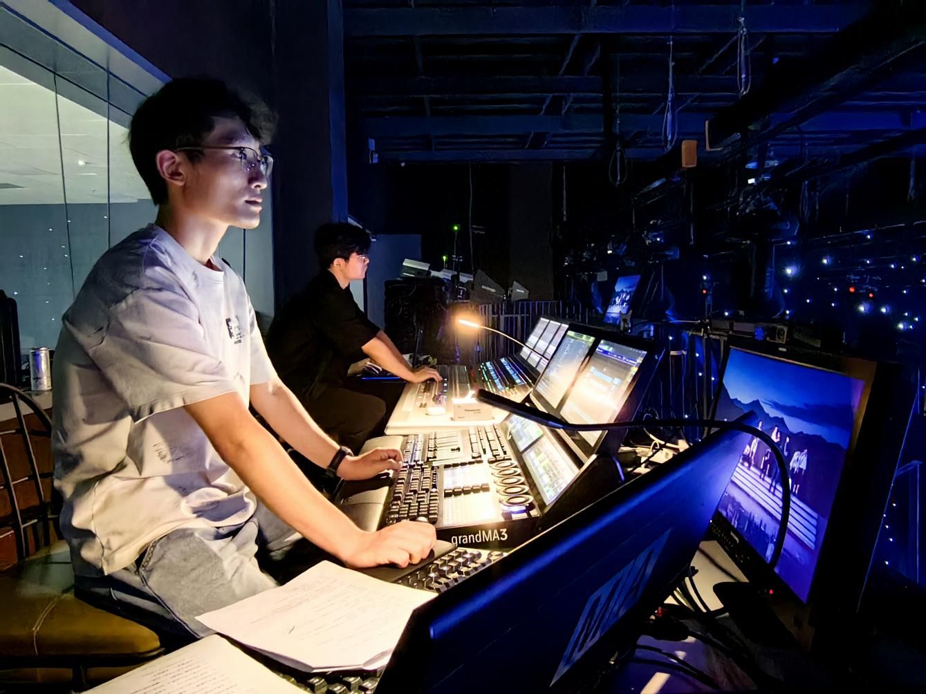 600平米演播廳配備先進(jìn)的燈光、音響設(shè)備為演出提供了技術(shù)保障,寧波廣電技術(shù)團(tuán)隊與浙江工商職院導(dǎo)演團(tuán)隊反復(fù)溝通、調(diào)試,定制燈光方案,確保整體環(huán)節(jié)、燈光、音響與劇情完美融合。