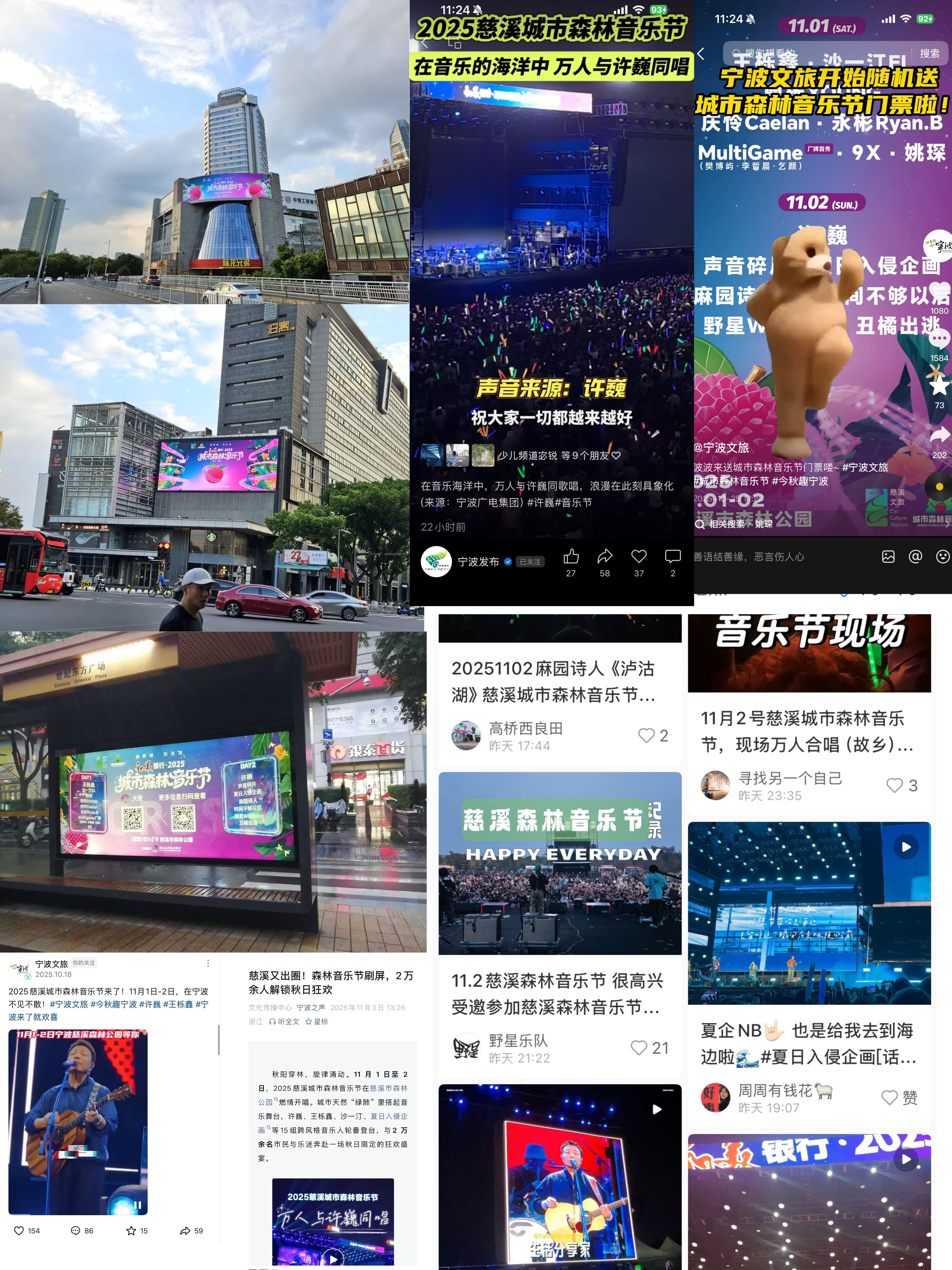 11月1日-2日,寧波廣電集團廣播傳媒文化傳播中心全案策劃執(zhí)行的2025慈溪城市森林音樂節(jié)在慈溪市森林公園燃情開唱。城市天然“綠肺”里搭起音樂舞臺,許巍、王櫟鑫、沙一汀、夏日入侵企畫等15組跨風格音樂人輪番登臺,與2萬余名市民與樂迷奔赴一場秋日限定的狂歡盛宴。