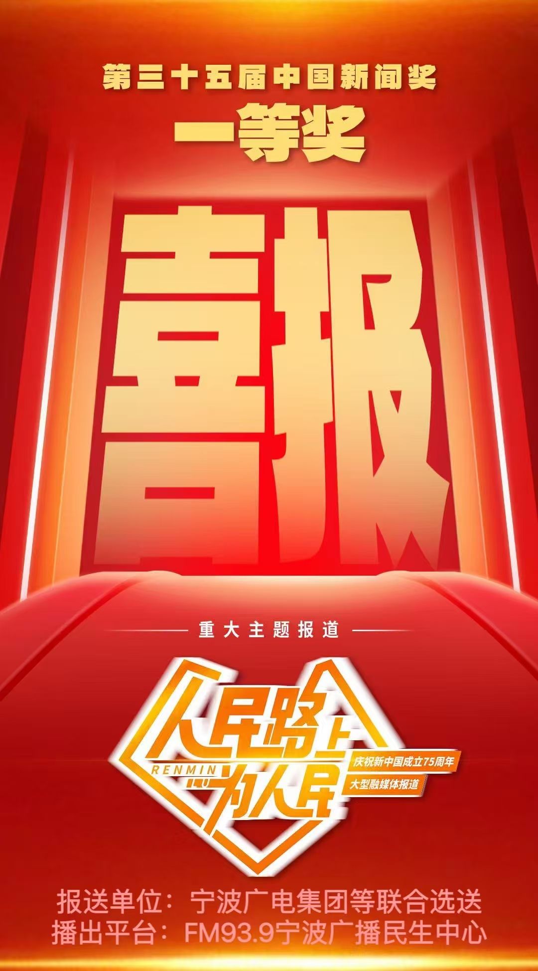 11月5日,第35屆中國(guó)新聞獎(jiǎng)評(píng)選結(jié)果揭曉,來(lái)自全國(guó)各級(jí)各類媒體的377件作品獲中國(guó)新聞獎(jiǎng),其中特別獎(jiǎng)4件、一等獎(jiǎng)74件、二等獎(jiǎng)113件、三等獎(jiǎng)186件。其中,寧波廣電集團(tuán)參與創(chuàng)作的重大主題報(bào)道《人民路上為人民》榮獲中國(guó)新聞獎(jiǎng)一等獎(jiǎng)。
