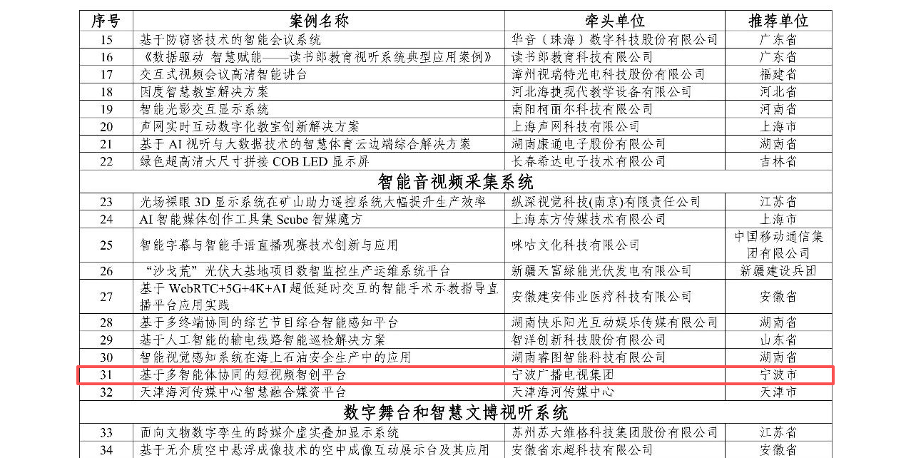 經(jīng)地方推薦、專家評審及網(wǎng)上公示,工業(yè)和信息化部辦公廳、 文化和旅游部辦公廳、國家廣電總局辦公廳、國家知識產(chǎn)權(quán)局辦公室、中央廣播電視總臺辦公廳近日聯(lián)合公布了2025年度視聽系統(tǒng)典型案例名單,最終確定86項案例入選。寧波廣電集團申報的《基于多智能體協(xié)同的短視頻智創(chuàng)平臺》憑借領(lǐng)先的技術(shù)創(chuàng)新與應(yīng)用價值,成功入選。