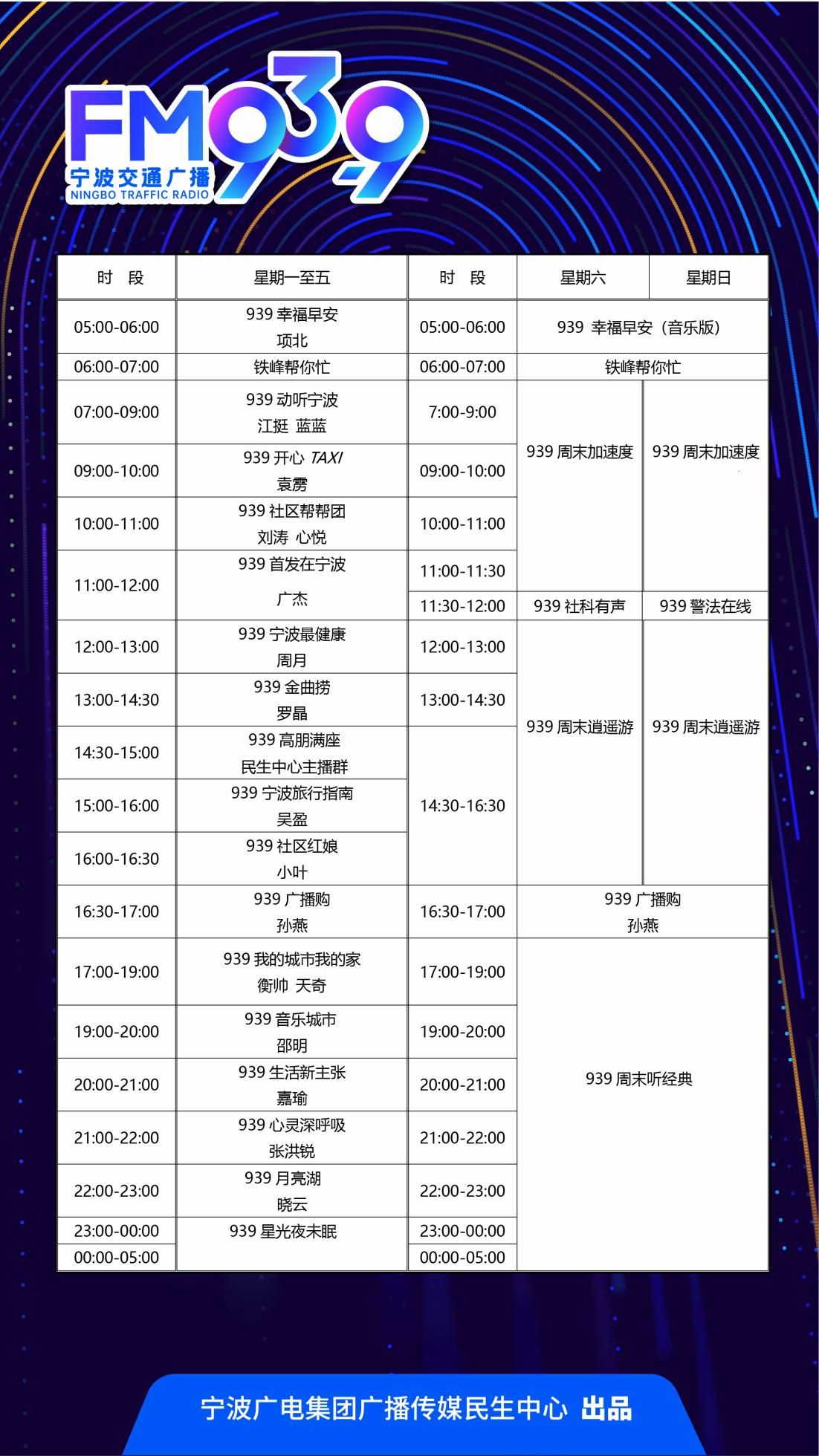 《939幸福早安》聚焦老年群體與銀發(fā)經(jīng)濟,通過經(jīng)典歌曲喚醒清晨時光,穿插天氣提示與生活資訊,成為銀發(fā)族的“晨間陪伴者”。