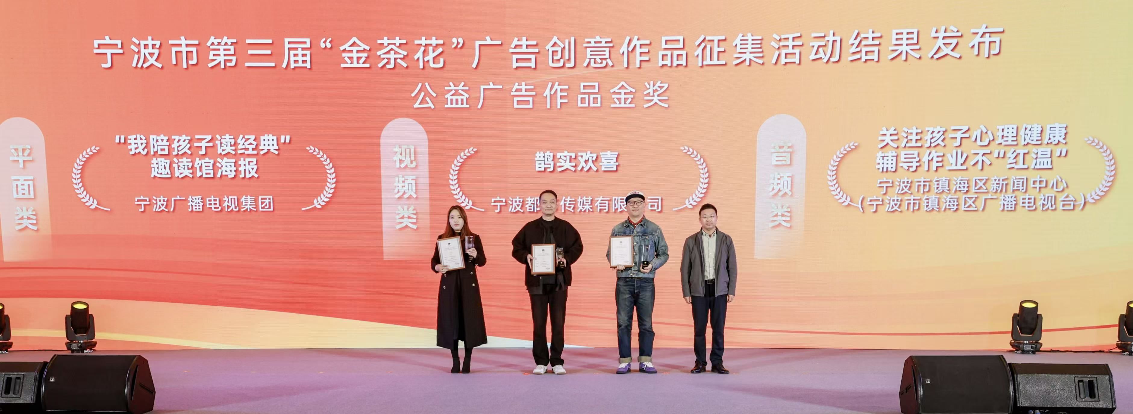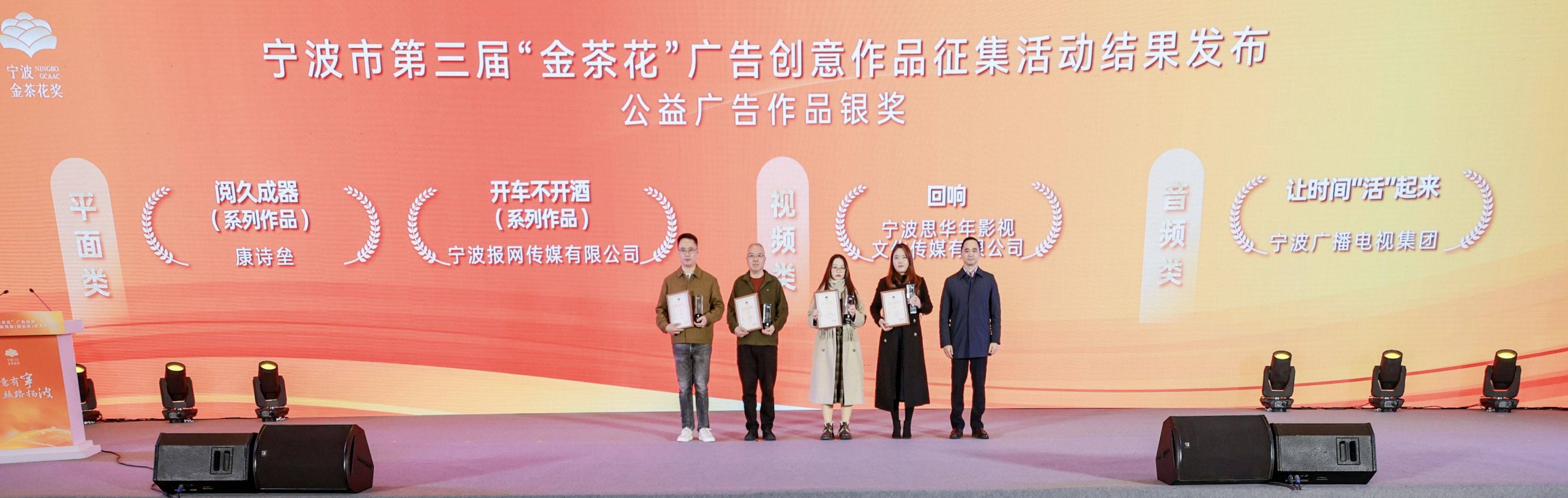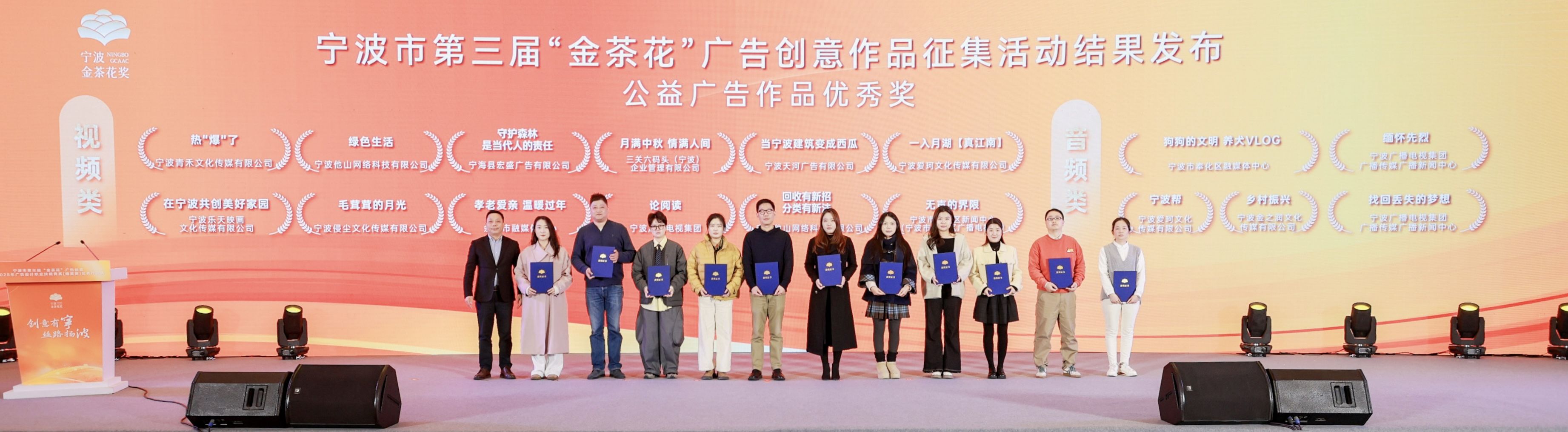 12月12日,由寧波市市場監(jiān)管局主辦、寧波市文化產(chǎn)業(yè)促進會、寧波市廣告?zhèn)髅絽f(xié)會、寧波國家廣告產(chǎn)業(yè)園區(qū)等單位共同承辦的寧波市第三屆“金茶花”廣告創(chuàng)意作品征集活動頒獎典禮成功舉行。大賽共征集參賽作品1235件(組),寧波廣電集團選送的公益廣告作品在平面、視頻、音頻三大類別中獲多個獎項。
