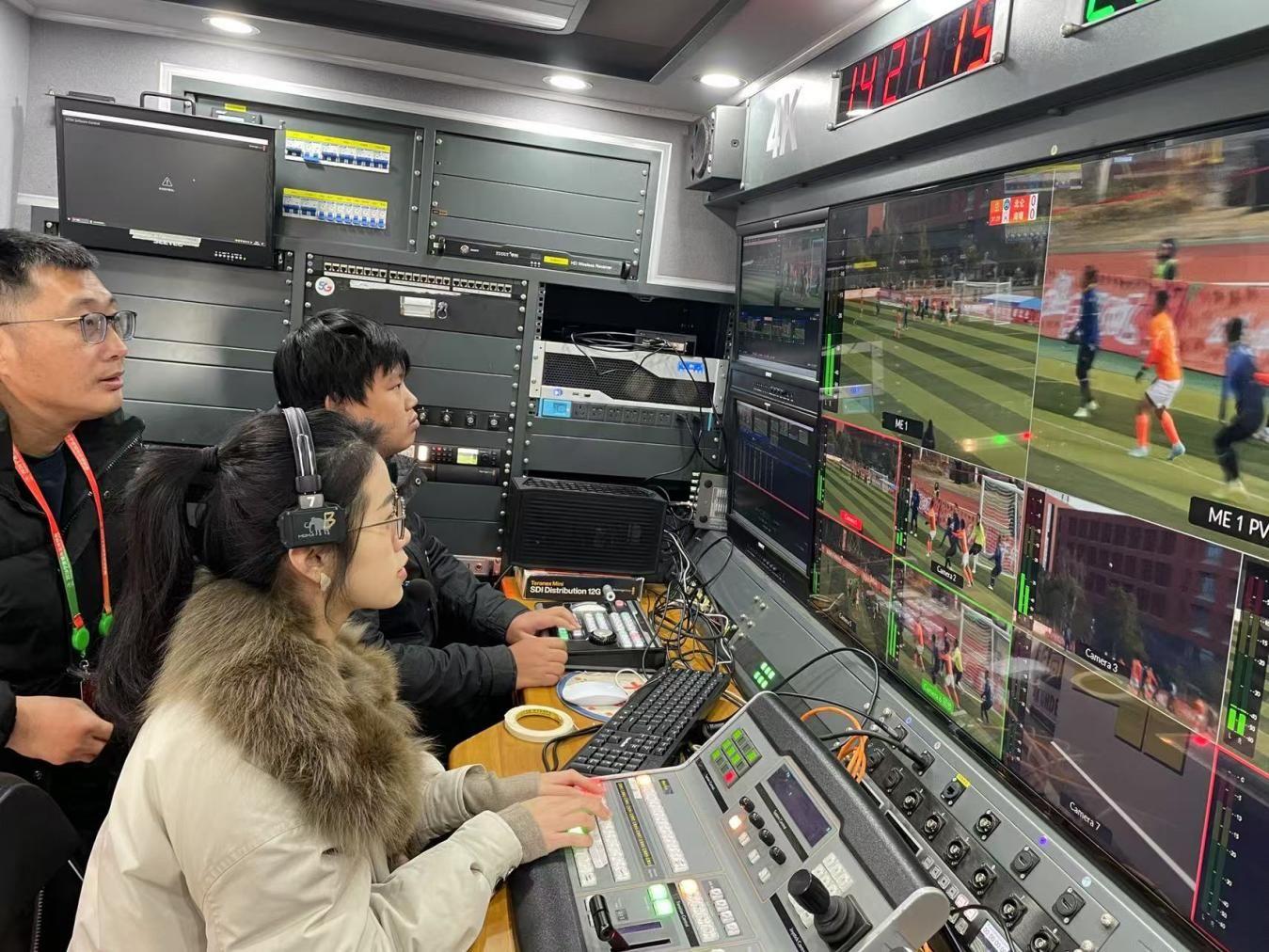 如果說(shuō)奉化揭幕戰(zhàn)的直播是完美開篇,那么1月2日的轉(zhuǎn)播則是寧波廣電交出的亮眼答卷。當(dāng)日,北侖、鎮(zhèn)海、慈溪三大賽區(qū)賽事同步開賽,分別上演北侖VS海曙、鎮(zhèn)海VS寧海、慈溪VS江北的精彩比拼,面對(duì)多賽區(qū)、多場(chǎng)次、點(diǎn)位分散的轉(zhuǎn)播難題,電視傳媒集結(jié)精銳團(tuán)隊(duì),配齊專業(yè)轉(zhuǎn)播設(shè)備,高效統(tǒng)籌三大賽場(chǎng)直播信號(hào),克服了低溫給人員和設(shè)備帶來(lái)的不利影響,實(shí)現(xiàn)網(wǎng)絡(luò)平臺(tái)流暢同步播出。三個(gè)賽區(qū)同步直播,這是寧波廣電在體育賽事轉(zhuǎn)播領(lǐng)域的全新突破,更是寧波城市足球聯(lián)賽影響力的有力彰顯。