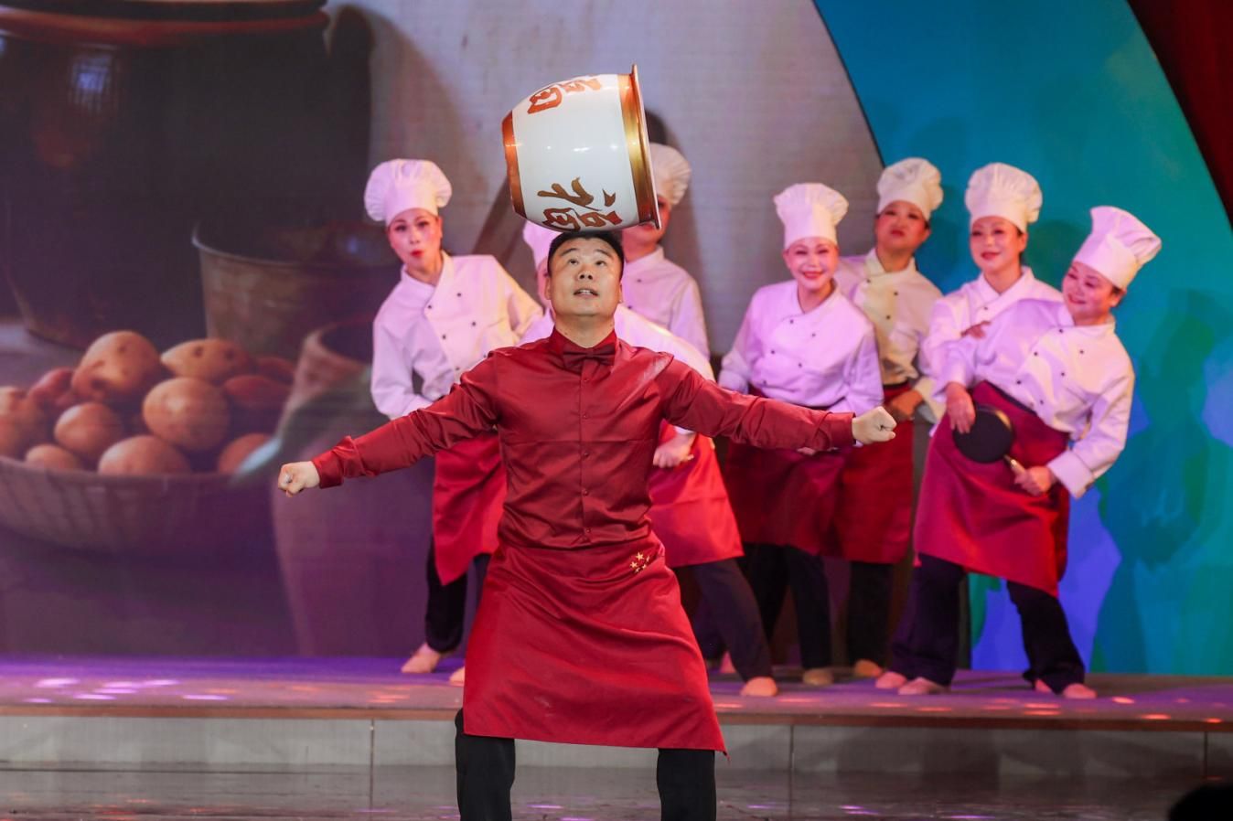 雜技《快樂廚房》將生活氣息拉滿,鍋碗瓢盆化作雜技道具,將日常的廚房場(chǎng)景演繹得妙趣橫生,傳遞出鄉(xiāng)村生活的幸福煙火氣;還有大型互動(dòng)近景魔術(shù)《此刻即奇跡》走進(jìn)觀眾席,邀請(qǐng)村民參與表演。