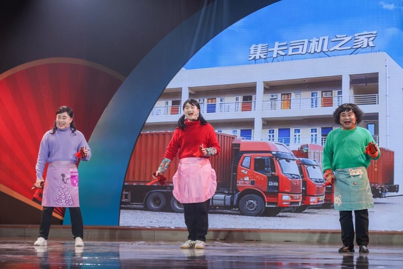 取材于集卡司機(jī)家庭真實(shí)生活的群口快板《三個(gè)卡嫂來吐槽》,由文化特派員反串表演,一句句樸實(shí)又接地氣的臺(tái)詞,道出了“車輪上的家”的酸甜苦辣,也折射出寧波“集卡司機(jī)之家”“共富工坊”的暖心舉措。